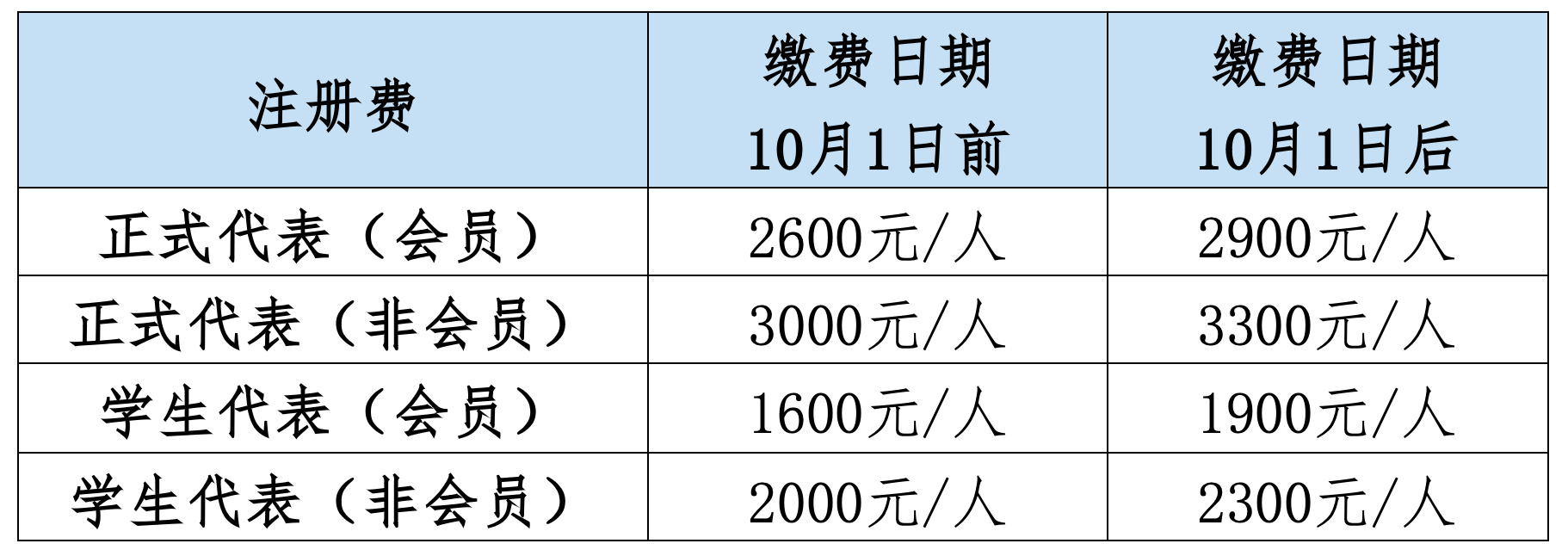 注册费由学会统一管理,参加分会场的代表请注册成都主会场,并选择第十分会场。以下为成都主会场会议注册费相关信息,分会场不另收会议注册费。