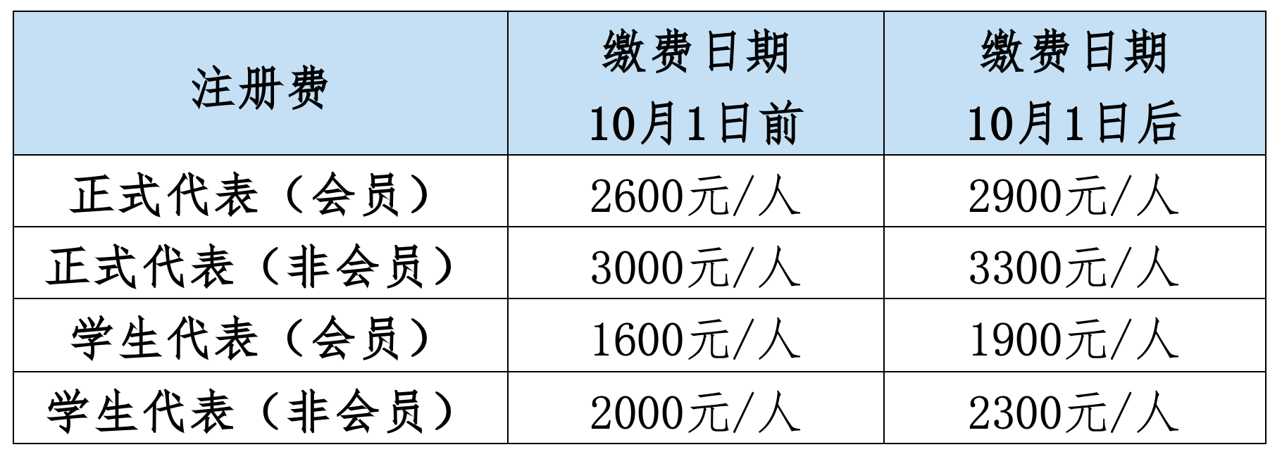 注册费由学会统一管理,参加分会场的代表请注册成都主会场,并选择第十一分会场。以下为成都主会场会议注册费相关信息,分会场不另收会议注册费。