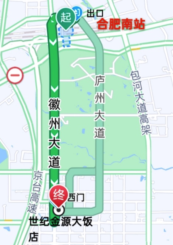注意:定位时需留意终点位置,合肥有三个世纪金源大饭店