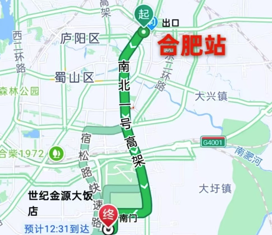 打车到世纪金源大酒店下车,打车约20分钟、15元。 3、合肥站—安徽世纪金源大饭店(合肥市包河区滨湖新区徽州大道5558号)