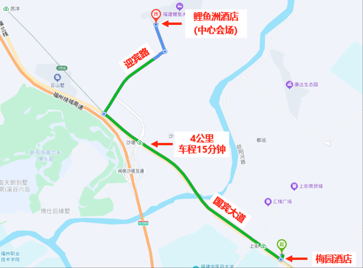 2. 住宿安排:注册缴费后,酒店预定将根据参会专家填写的住宿登记信息由会务组统一预留房间并办理入住福建鲤鱼洲酒店或梅园酒店(福州大学城店)。梅园酒店有专车接送往返鲤鱼洲酒店(会议地点),车程约4公里、15分钟。