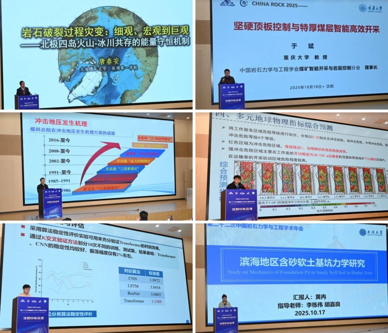 2025年10月17日-19日,CHINA ROCK 2025第二十二次中国岩石力学与工程学术年会沈阳中心会场会议在辽宁大学顺利召开。本次会议由中国岩石力学与工程学会(CSRME)、国际地质灾害与减灾协会(ICGdR)主办,矿山冲击地压专业委员会、煤矿智能开采与岩层控制分会、国际交流工作委员会、中国矿山安全学会冲击地压和岩爆防治专委会、辽宁大学、重庆大学、大连理工大学、辽宁工程技术大学、中山大学、晋能控股煤业集团等单位共同承办,东北大学、辽宁科技大学、沈阳大学等24家单位协办。会议得到了沈阳市科学技术协会的大力支持。
