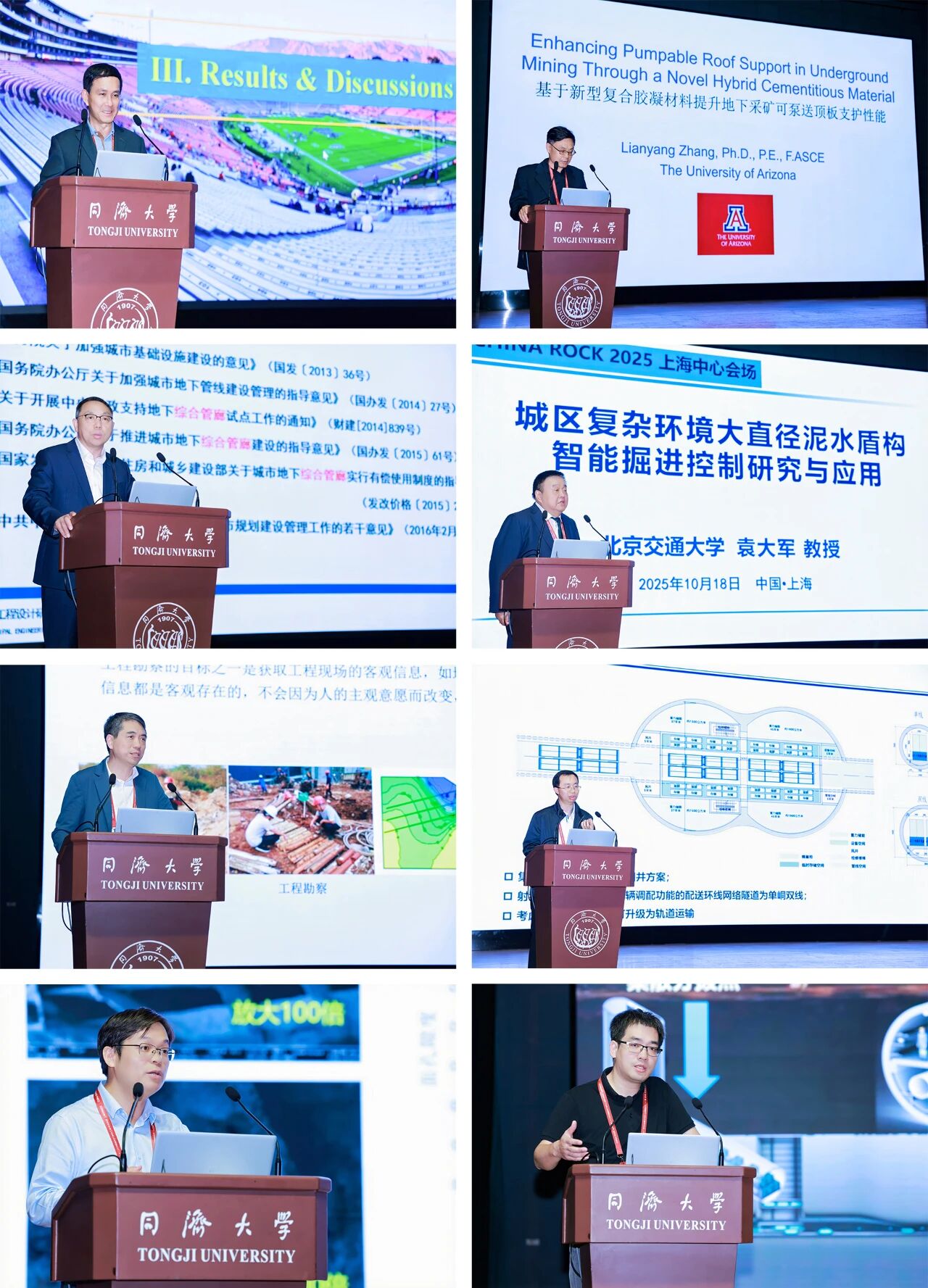 共同主办单位上海市政工程设计研究院(集团)有限公司总工程师王恒栋在致辞时表示,本次年会旨在搭建产学研深度融合的高端交流平台,促进科技成果与产业需求精准对接,并为青年人才成长提供支持,共同推动行业技术创新与发展。大会由上海市政工程设计研究总院(集团)有限公司正高级工程师范益群主持。 大会首日主旨报告环节,多位海内外知名专家分享了前沿研究成果。美国加州大学洛杉矶分校教授、欧洲科学院院士、欧洲科学与艺术院院士朱建文以《Multiscale Micromechanical Progressive Elastic-Damage Model for Cementitious Composites Featuring Superabsorbent Polymer (SAP)》为题,深入剖析了含高吸水聚合物水泥基复合材料的多尺度细观力学渐进弹性损伤模型;美国亚利桑那大学Delbert R荣誉教授章连洋以《Enhancing Pumpable Roof Support in Underground Mining Through a Novel Hybrid Cementitious Material》为题,介绍了通过新型混合水泥基材料提升地下采矿可泵送顶板支护效果的研究;上海市政工程设计研究总院(集团)有限公司总工程师、正高级工程师王恒栋以《我国城市地下管廊建设现状及发展建议》为题,分析了当前我国城市地下管廊建设的实际情况并提出发展方向建议;北京交通大学教授袁大军以《城区复杂环境大直径泥水盾构智能掘进控制研究与应用》为题,分享了在城区复杂环境下大直径泥水盾构智能掘进控制的研究成果与实际应用;上海勘测设计研究院有限公司正高级工程师、全国工程勘察设计大师王笃礼以《工程勘察数字化转型的思考和探索》为题,探讨了工程勘察领域数字化转型的思路与实践路径;上海隧道工程股份有限公司正高级工程师朱雁飞以《地下轻型物流隧道建设设想》为题,提出了地下轻型物流隧道建设的相关构想;湖南工程学院学术副校长、重庆大学教授丁选明以《未来岛礁工程——珊瑚土的就地利用与低碳建造》为题,阐述了未来岛礁工程中就地利用资源与低碳建造的理念及相关实践;北京航空航天大学宁波创新研究院副院长、研究员文通以《基于地下综合管廊的全域物流运输配送系统关键技术及应用研究》为题,研究了基于地下综合管廊的全域物流运输配送系统关键技术及应用。 围绕“未来岩土工程:数智赋能可持续发展”这一主题,大会共设置5个分论坛,总计52个学术报告,内容覆盖理论创新与AI应用的多个前沿方向。