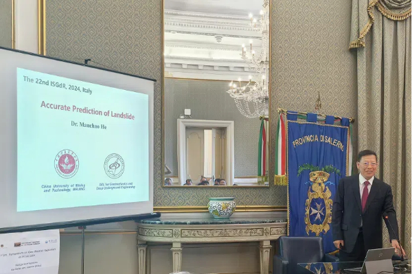 2024年7月22-25日,由国际地质灾害与减灾协会(ICGdR)主办的第22届国际地质灾害与减灾研讨会(ISGdR 2024)在意大利萨勒诺召开。来自中国、意大利、法国、英国、荷兰、日本、克罗地亚等十余个国家和地区的168位学者注册参会,其中中国代表68位,占比40%。中国岩石力学与工程学会党委书记、理事长何满潮院士率队参会,并做了题为“Accurate Prediction of Landslide”的主旨报告,并被大会选为国际地质灾害与减灾协会(ICGdR)新一届亚洲副主席。