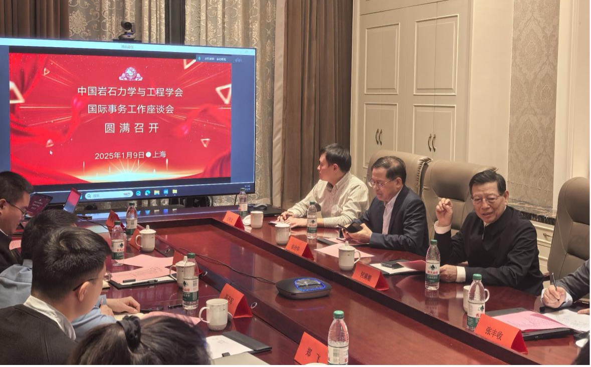 2025年1月9日下午,中国岩石力学与工程学会国际事务工作座谈会在上海顺利召开。学会党委书记、理事长、ISRM中国国家小组主席何满潮院士,ISRM中国国家小组执行主席朱合华院士出席会议并发表重要讲话。