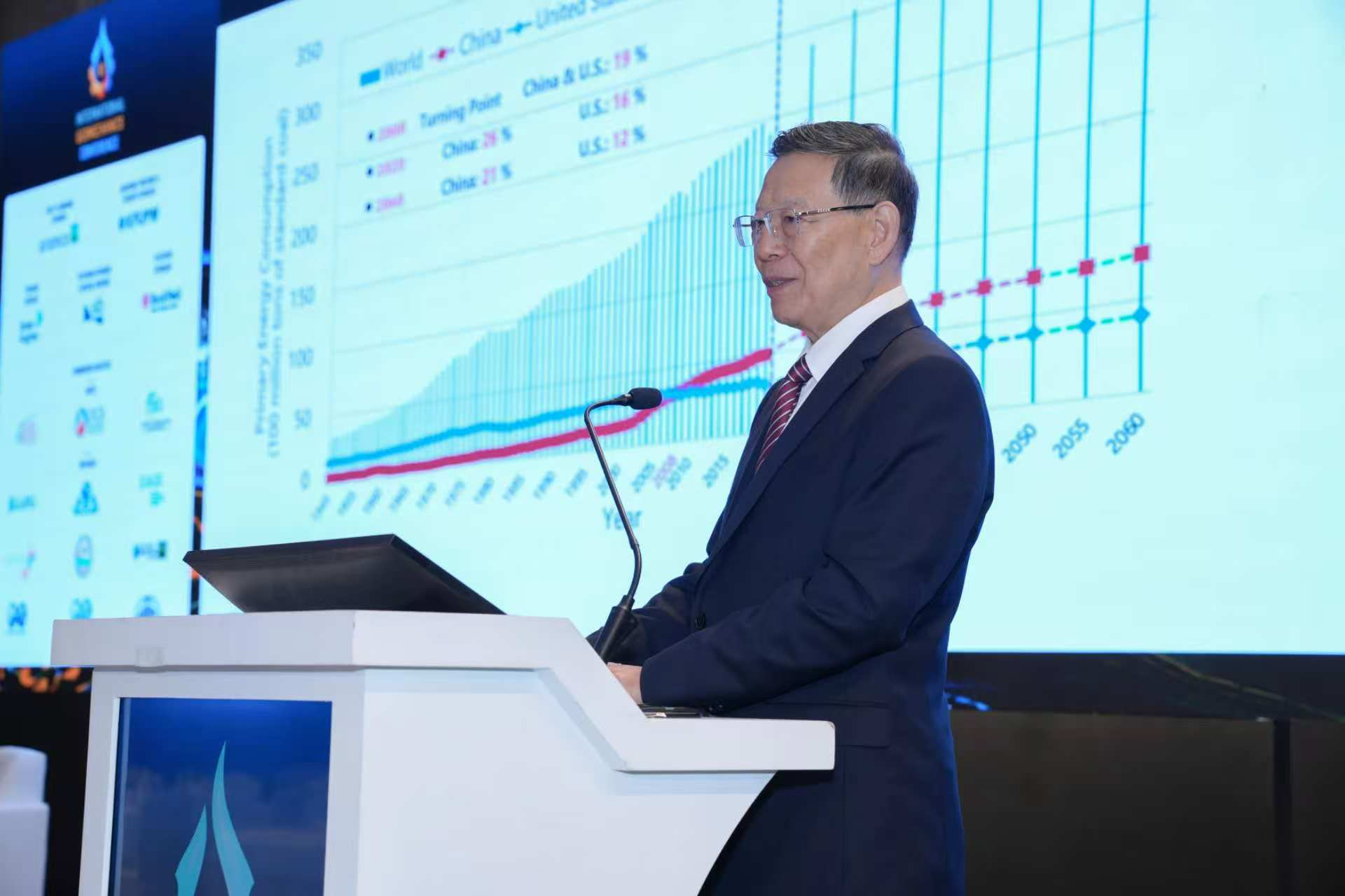 11月20日,何满潮院士再次登上主会场,作题为《The Future of Energy in China》的特邀报告。他从全球能源发展历程出发,深入剖析中国能源结构转型路径,强调基于以煤为主的基本国情推动碳中和目标实现,重点介绍了具有自主知识产权的N00采矿法及其在创造大规模地下空间、推进二氧化碳封存方面的重大潜力,为中国实现2060碳中和目标提供了关键科技路径,展现了中国科学家在全球能源领域的责任担当。