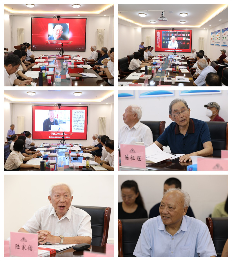 学会党政办主任、常务副秘书长杨军介绍了学会弘扬科学家精神系列活动开展情况和本次活动筹备情况。在交流座谈环节,学会第三届理事会理事长、96岁高龄的孙钧院士回顾了陈先生打破常规,勇于创新,大胆试验,及时发现三峡地区岩体流变问题并着力攻关,为国家重大工程保驾护航的故事。学会第五届、第六届理事会理事长,国家最高科学技术奖、“八一勋章”获得者钱七虎院士发出坚守初心宗旨、担当科技使命、锐意改革创新的号召!学会第四、五、六届理事会副理事长,金川有色金属公司原副总经理刘同有先生回顾了陈先生集智攻关,以科技力量助力金川从 “巷道施工前面掘进后面塌,前面支护后面垮,垮了支,支了垮,工程返工量很大,基建速度十分缓慢”向“一天一指头、一月一拳头,每班掘进一米,提前一年完工”的转变。学会名誉理事长陈祖煜院士,学会第二届理事会理事、中国水利水电科学研究院教高陆家佑先生,学会顾问、北京科技大学方祖烈教授,冯夏庭院士、李术才院士、康红普院士、党委副书记杨晓杰、党委委员、副理事长李晓、徐锡伟、殷跃平、邬爱卿,副理事长杜时贵、赵勇,学会监事李萍丰, 国际学会中国国家小组副主席杨强、唐春安等13位学会“三+一”领导班子代表和学会秘书处“共产主义萌芽”式干部代表张丰收教授依次发言,深入交流了陈先生的学术思想和高尚品格,以及他尊重知识、追求真理、开拓创新、锐意进取的科学家精神,老先生们讲到动情之处几度哽咽,陈先生把一生都献给了祖国,国家需要就是他的需要。大家纷纷表示,现在学会发展的越来越好,各项工作都有所突破,并获得科协的高度认可,这些都离不来陈宗基先生为我们创造的机会和平台,中国岩石力学与工程学会将时刻秉承陈先生的办会理念,不负韶华,齐心协力从岩石力学大国向岩石力学强国迈进!共同为建设中国特色一流学会奋力拼博!