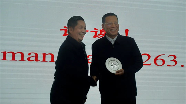 杨春和院士向何满潮院士授牌