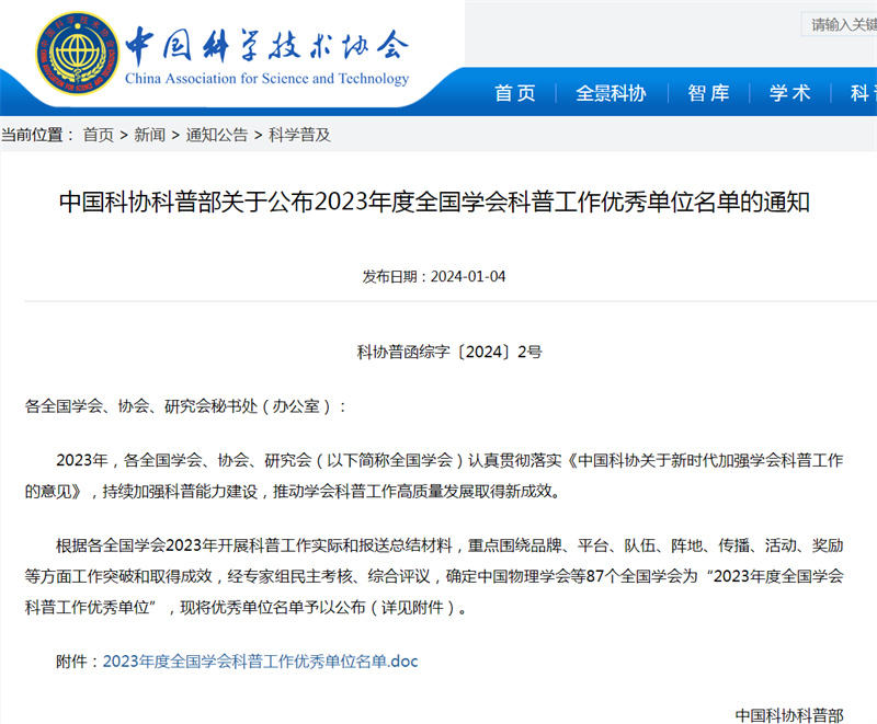 中国岩石力学与工程学会第九次获评"全国学会科普工作优秀单位"