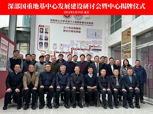 2024年1月19日,深部国重地基中心发展建设研讨会暨中心揭牌仪式隆重举行。中国科学院院士、中国岩石力学与工程学会党委书记理事长何满潮,住建部科技与产业化发展中心曹吉昌处长、、中国工程院刘汉龙院士、清华大学李广信教授、中国建筑设计研究院总工任庆英大师、中国建筑集团毛志兵总工、东南大学刘松玉教授、北京城建集团张晋勋总工等院士专家、领导嘉宾、地基中心学术委员会、发展战略咨询委员会委员代表,以及来自兄弟中心、合作单位、行业相关学协会代表等40余人参加线下会议,1万余人次观看视频直播。会议由中国岩石力学与工程学会岩土地基工程分会朱春明理事长主持。 何满潮院士在致辞中指出,地基中心的设立,是着实推进科技成果向应用转化的重大举措。希望地基中心在研发和推广工作中要统筹规划明确目标,要提高站位,要发挥协同优势,搭建更具创新实力的研发平台,加快推进科技成果"盆景"向市场"风景"转化。