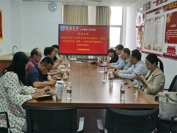 2024年3月23日,中国岩石力学与工程学会党委书记、理事长何满潮院士率队赴海南大学土木建筑工程学院开展交流座谈。学会代理秘书长杨军教授、标准化技术委员会顾问秘书长黄理兴研究员,海南大学土木建筑工程学院院长周智教授、副院长张友良教授和副院长辛大波教授一同参加。