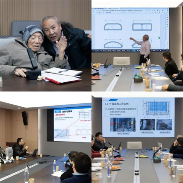 孙钧院士会上会下多次对我们讲:高质量发展就是要更加低碳、更加安全、更加环保,建设和产品要更加精美、更加智能;要注意将人工智能、数字孪生、信息工程等的思想-方法-技术-产品植入传统产业和工程中,获得新型品质生产力,依靠科技的力量推动社会发展。他指出:北城天街人防工程就是典型的城市环境岩土力学与工程问题,填土-软岩地层、楼宇-管网密布、大跨-浅埋边界、地铁-道路近临等构成工程建设难点,安全与环保要求高,一定要认真分析,深化方案,降低风险、确保成功!孙先生在对我们提出上述原则性要求的同时,还对我们初定的断面形状-支护参数-结构形式-开挖步序-信息反馈等设计技术方案提出真知灼见的具体意见。孙院士已98岁,这些需要多么大的意志力才能完成!老科学家孙先生靠着对科技事业的热爱和追求,与自己衰弱的身体作顽强拼搏,是我等后辈永远的学习榜样!