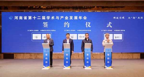 第十二届学术与产业发展年会以“科技引领,向‘新’而行”为主题,突出学术和创新导向,开展现场签约、院士专家报告会、“全国学会入豫计划”座谈会、“百会链千企”活动典型案例发布、三门峡市产业技术需求发布等多项活动,精准对接三门峡市8大新材料产业集群、6大高端制造产业集群和12条重点产业链科技需求,以科技创新引领赋能产业创新,助力三门峡新质生产力发展。