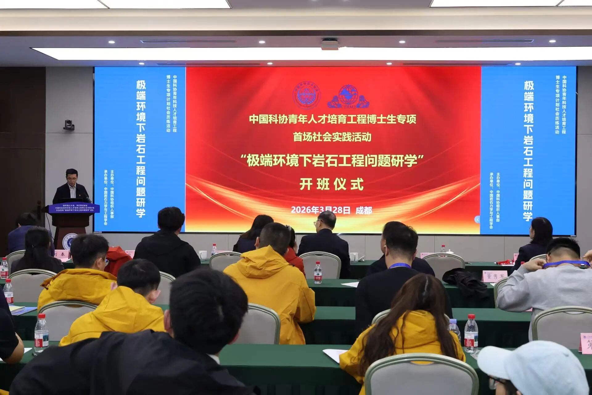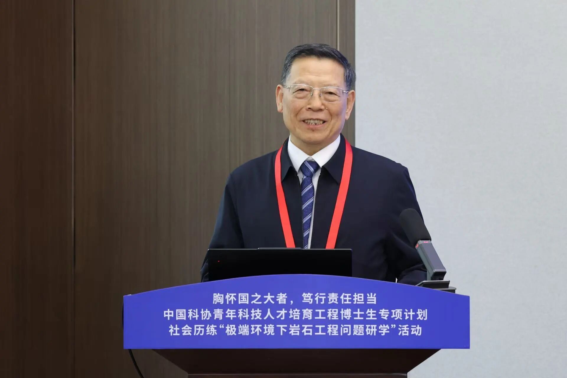 3月29日下午,中国科协青年人才培育工程博士生专项首场社会历练活动—“极端环境下岩石工程问题研学”在成都扬帆起航。开班仪式上,成都理工大学成立中国岩石力学与工程学会首个学生分会。 中国科协组织人事部、四川省科协、成都市科协等相关负责同志到会指导,《瞭望中国》杂志社荣誉社长秦清润、中国国际文化交流基金会爱国主义教育基金管理委员会相关负责人应邀参会,中国科学院院士、中国岩石力学与工程学会党委书记、理事长何满潮出席活动并发布重要讲话,学会副理事长、成都理工大学校长许强教授,ISRM中国国家小组副主席范宣梅教授、刘春教授、聂雯教授等出席活动。开班仪式由中国科协培训和人才服务中心王洪建教授主持。 何满潮院士在致辞中强调,青年是科技创新的中坚力量,是冉冉升起的朝阳。他表示,学会始终将青年人才培育工作置于重要位置。本次活动正值“科技三会”召开十周年,当前国际环境复杂多变,以科技创新破解“卡脖子”难题尤为迫切。在“十五五”规划开局的关键节点,面对日益激烈的国际科技竞争与越发艰巨的核心技术攻关任务,我们必须坚持走自主创新之路,加速实现高水平科技自立自强。成立学生分会,是学会落实创新驱动发展战略、强化青年人才培养的重要抓手。他勉励广大青年科技工作者既要厚积学识,更需深悟科学本质,在极端环境工程、国产工业软件研发等关键领域勇担重任,为赢得科技竞争、实现国家高水平科技自立自强贡献青春智慧与力量。