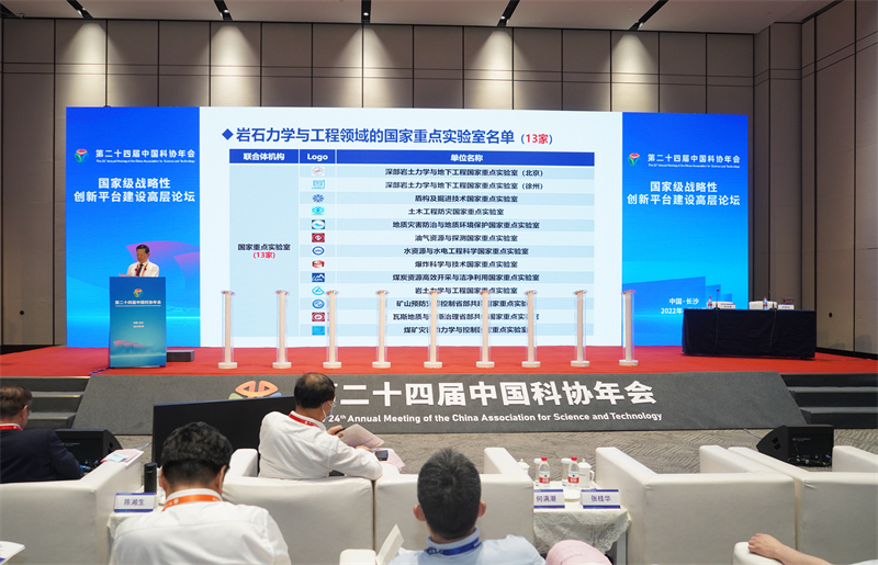 "科创中国"岩石力学与重大工程-国家重点实验室科技创新联合体重要信息于2022年6月26日在湖南长沙,第二十届中国科协年会"国家级战略性创新平台建设高层论坛"上正式发布。