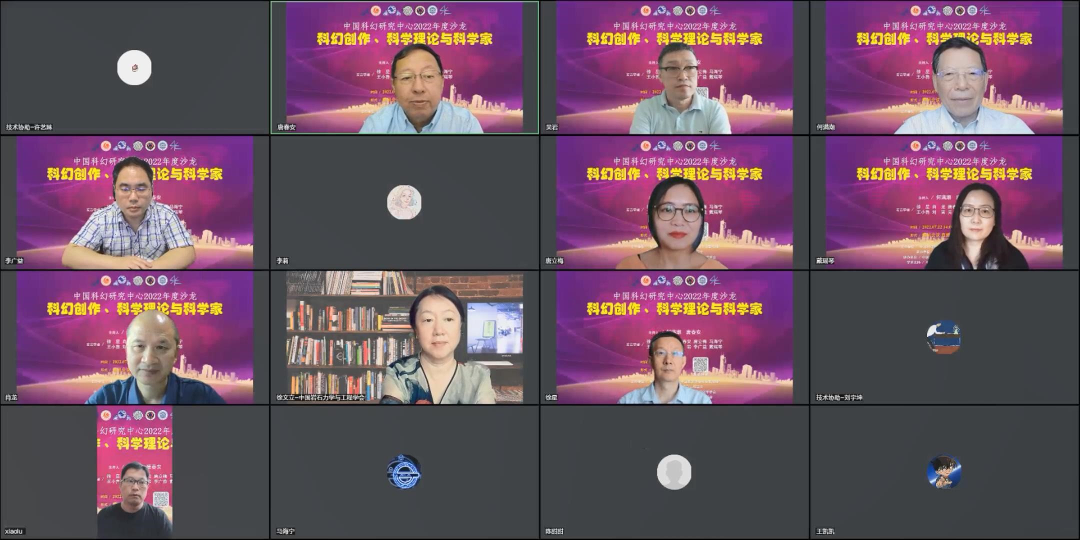 7月22日,由中国科幻研究中心、中国作家协会社会联络部共同主办的"科幻创作、科学理论与科学家"主题沙龙在线上举办。沙龙由中国岩石力学与工程学会承办,中国地质学会、中国矿物岩石地球化学学会协办,中国作家网、大连理工大学和光读书会提供学术支持。活动邀请国内科学家、电影人、科幻文学研究者等多位嘉宾进行跨界交流分享,大连理工大学教授、中国地质大学(武汉)首席教授唐春安担任主持。