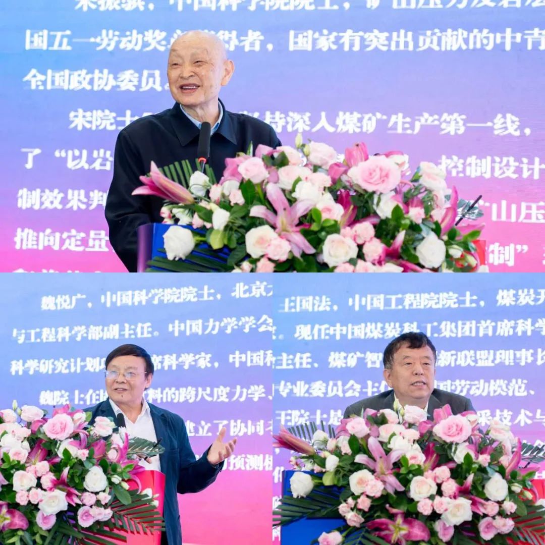 学会理事长何满潮院士以“矿山压力之妙用”为题作特邀报告。报告从“矿山压力是敌人”“敌人可以转化为朋友”“转化原理和条件”“实践效果”及“展望”五个方面展开。“矿山压力曾经是煤层开采的敌人,但也可以转化为朋友”等金句频出,受到与会代表高度好评。王国法院士、魏悦广院士和宋振骐院士分别以“冲击地压煤层如何实现安全高效智能开采”“固体力学的若干关键进展及应用于工程的前景展望”“能源安全、交通领域科技创新发展的重点”为题作特邀报告,山东科技大学副校长薛庆忠主持。