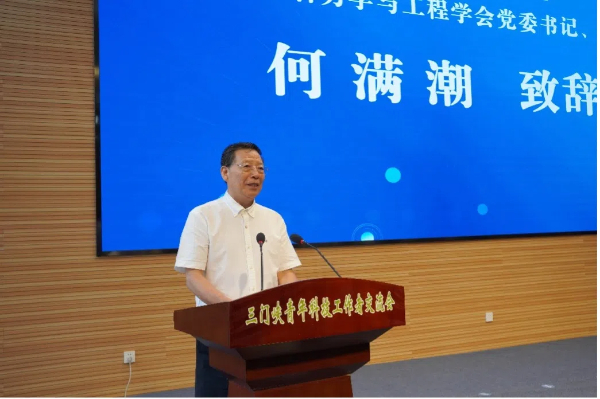 2024年7月3日,三门峡青年科技工作者交流会在河南三门峡市召开。中国岩石力学与工程学会党委书记、理事长何满潮院士出席会议并致辞;学会党委副书记杨晓杰教授,三门峡市委副书记赵建玲,市人大常委会党组成员、一级巡视员庆志英,市政协副主席冯勇,三门峡市科协党组书记、主席彭增康,三门峡职业技术学院院长颉潭成等嘉宾出席会议。三门峡副市长卫祥玉主持会议。