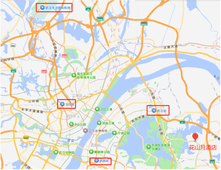 公共交通:从武汉站西广场站乘坐地铁19号线至花山新城站。
