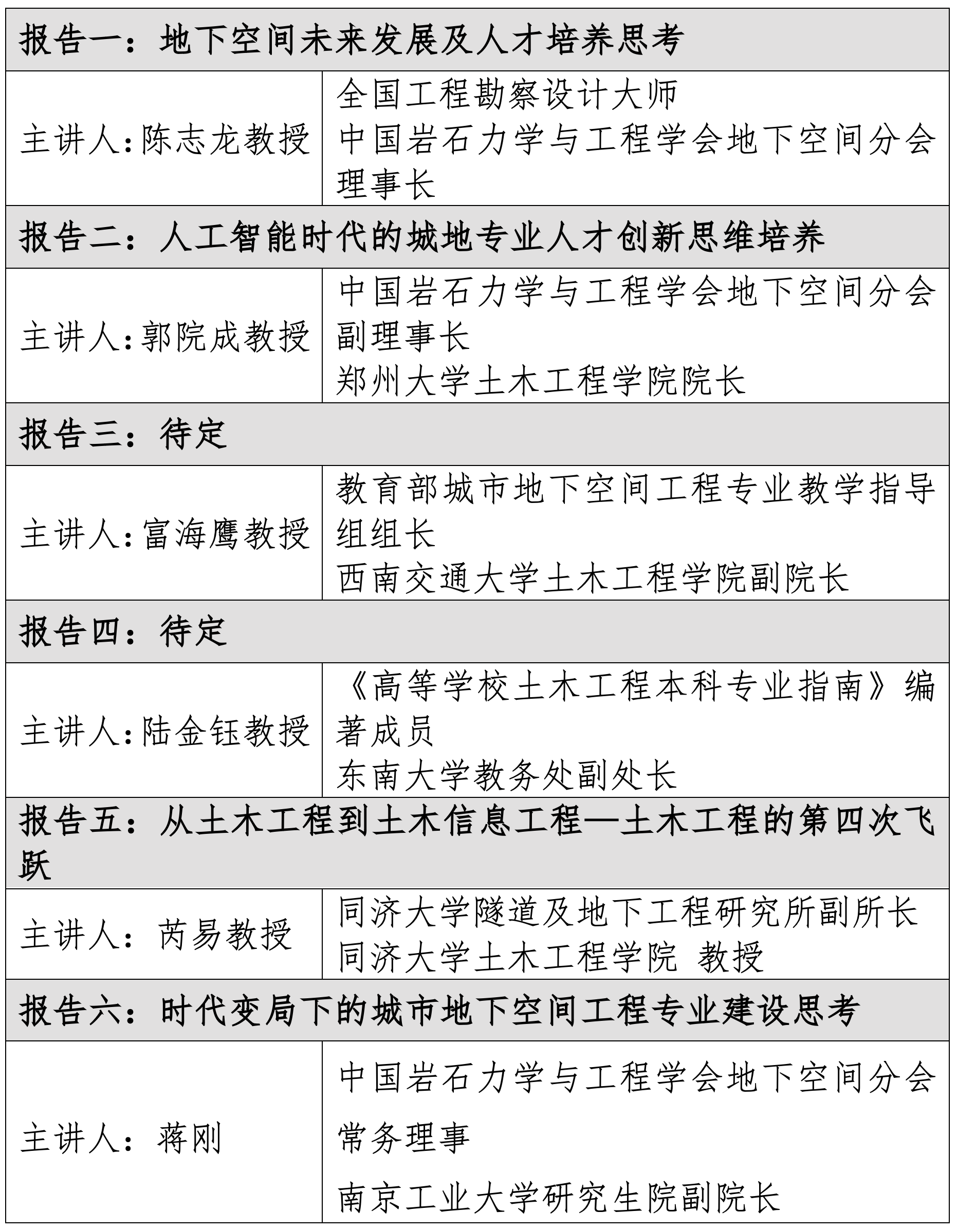 (三)会议特邀主旨报告如下: 四、高校城市地下空间工程专业青年教师讲课大赛