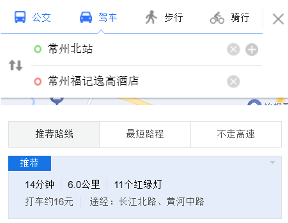 从常州北站直接打车前往常州福记逸高大酒店,距离约6公里,耗时约15分钟,花费约16元(根据实时路况和计价规则可能有所不同)。 地铁线路(推荐):