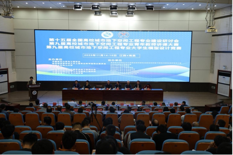2025年11月14日至16日,第十五届高校城市地下空间工程专业建设研讨会暨第九届高校城市地下空间工程专业青年教师讲课大赛和第九届高校城市地下空间工程专业大学生模型设计竞赛(以下简称“一会两赛”),在江西水利电力大学举办。本次会议由中国岩石力学与工程学会、教育部高等学校土木工程专业教学指导分委员会、江西水利电力大学主办,中国岩石力学与工程学会地下空间分会、江西水利电力大学土木与建筑工程学院和江西省岩土力学与工程学会联合承办。