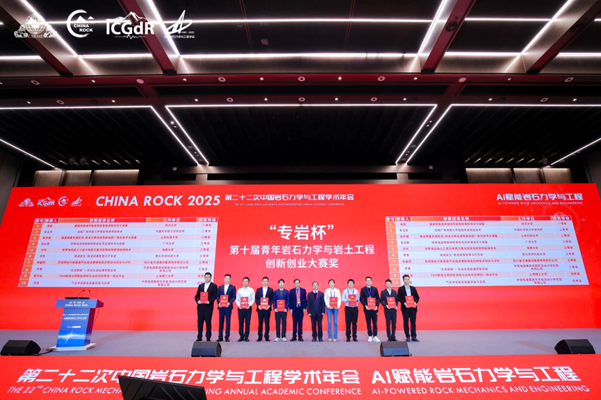 10月19日,在CHINA ROCK 2025第二十二次中国岩石力学与工程学术年会闭幕式上,举行了盛大的颁奖典礼,学会副监事长杨晓杰教授和学会副理事长张玉芳研究员为获奖选手颁发了证书。至此,第十届“专岩杯”青年岩石力学与岩土工程创新创业大赛成功落幕。