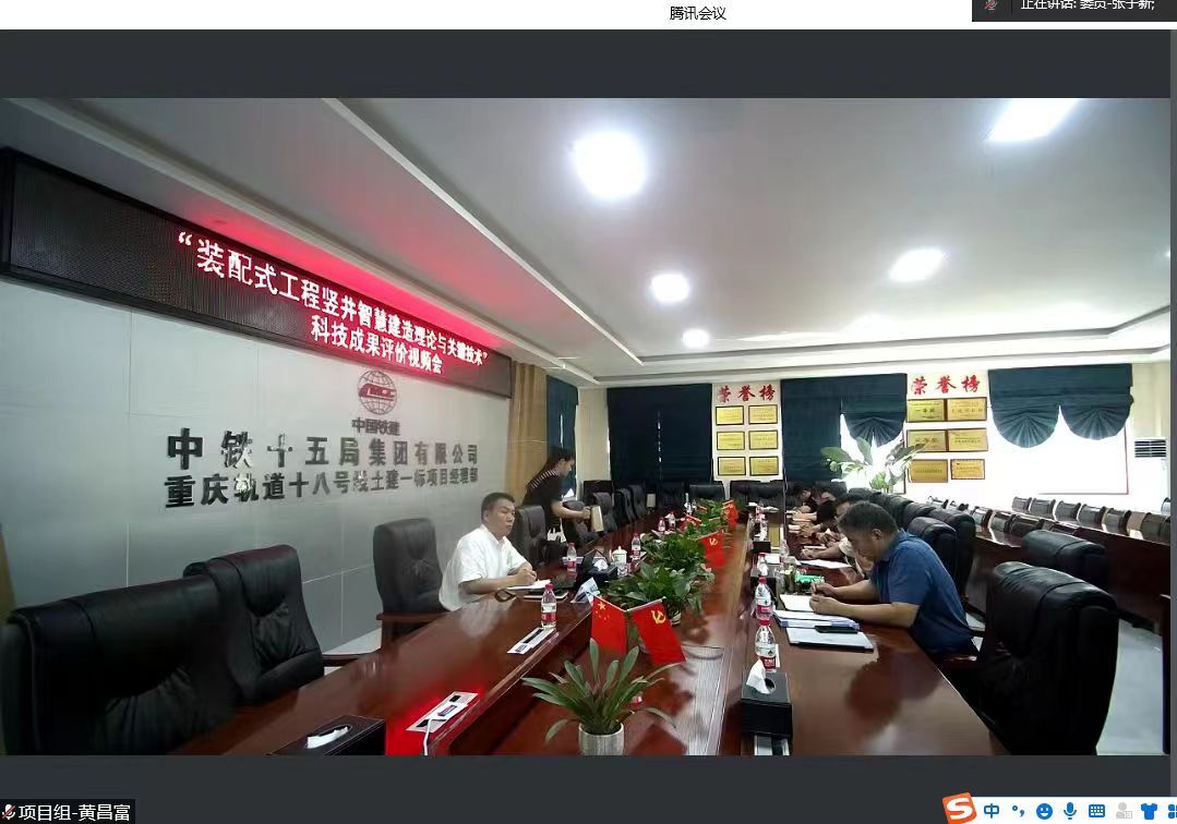 中铁十五局集团有限公司党委书记、董事长黄昌富线上参会,中铁十五局首席科学家、中国地质大学(北京)杨宇友教授代表课题组作成果汇报。该项目由中铁十五局集团有限公司和中国地质大学(北京)组建研发团队,针对复杂地质条件和敏感施工环境下工程竖井的绿色低碳建造难题,基于"安全、绿色、经济、智慧"的建造理念,通过理论分析、数值计算、模型试验、现场实践等手段,建立了基于地质环境时空效应的装配式工程竖井智慧支护理论和关键技术体系,取得了一系列创新性成果,授权国家发明专利22件,国家级工法2项,省部级工法5项,发表学术论文40余篇。成果在北京地铁新机场线一期、云南云临高速公路深大通风竖井等10多个省市百余项竖井工程中成功应用,取得了显著的经济、社会和环境效益,大力促进了我国地下空间装配式建筑领域的科学技术进步。评价委员会专家听取了项目组的汇报,审阅了相关资料,经质询讨论和评议,经评价委员会投票表决,成果总体上达到国际领先水平。