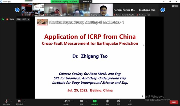 On the evening of July 25, 2022, in Beijing, China, the International Consortium on Geo-disaster Reduction (ICGdR) held the first expert group meeting of ICRP "Cross-Fault Measurements for Earthquake Prediction" online. A total of 21 experts from 8 countries around the world attended the meeting, including the director of the expert group, Academician Manchao He, the deputy director of the expert group, Academician Fawu Wang, the secretary-general of the expert group, Professor Zhigang Tao, Professor Antonio Bobet and Professor Ahmad Ghassemi from America, Professor Teuku Faisal Fathani from Indonesia, Professor Ranjan Kumar Dahal from Nepal, Dr. Alexander Strom from Russia, Professor Omer Aydan from Japan, Professor Seokwon Jeon from South Korea, Professor Malay Mukul from India, and researcher Xiwei Xu from China.