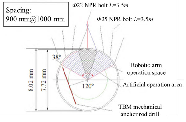 The second-generation micro NPR bolts, made from high-strength and high-toughness alloy steel, exhibit excellent NPR effects. When subjected to axial tension or compression, these bolts uniformly deform along their entire length without necking, providing enhanced resilience and energy absorption capacity. Additionally, they possess superior anti-explosion and anti-impact properties, making them particularly suited for managing large rock deformations[5]. Figure 3 shows the micro NPR anchor support design scheme.