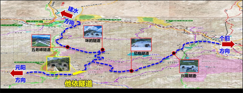The Jian-Ge-Yuan Highway is a key project in the "five-network" and comprehensive transportation in Yunnan Province. As a key project in Yunnan Province's "Thirteenth Five-Year Plan", it is in line with Yunnan Province's three strategies of "integrating into central Yunnan, linking north and south, and opening up development", which were fully implemented by Honghe Autonomous Prefecture. It is designed to become the transportation hub connecting Yunnan and ASEAN. The total length of the Highway is 124.53 km with a design speed of 80 km/hour. It has a bridge and tunnel ratio of 72%, and consists of the Jianshui-Yuanyang section and the Gejiu-Yuanyang section. A total of 29 tunnels (6 extra-long tunnels) will be constructed on the whole line, which is one of the most difficult highway projects currently under construction in Yunnan Province.