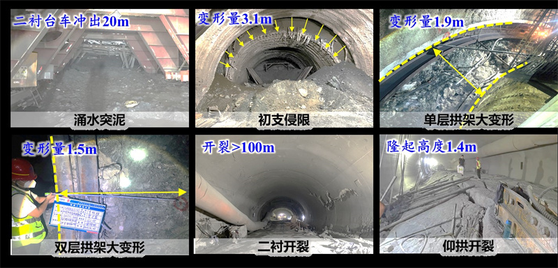 "Soft rock, large deformation, landslides, water gushing, mud intrusion, and collapse... the geological conditions of the Tabaiyi Tunnel were beyond conceivability, and the excavation was very difficult," recalled the engineers of the project. The overall surrounding rock of the tunnel is extremely fractured and is easily disturbed by large deformation of soft rock. The initial support settlement was greatly convergent, the initial support concrete was cracked, and seriously dropped, and the steel arch frame was seriously distorted and deformed. It is difficult to resist the deformation of the surrounding rock even if the protective arch was added in some sections, resulting in the cracking of the secondary lining and the uplift of the inverted arch.
