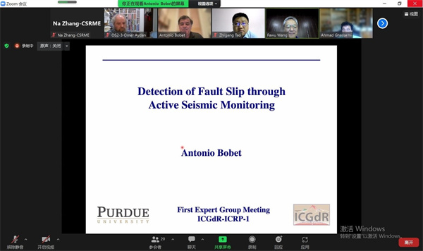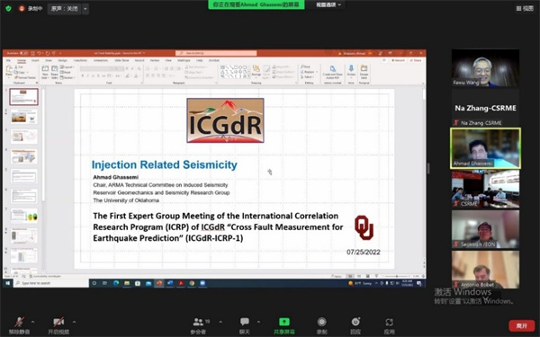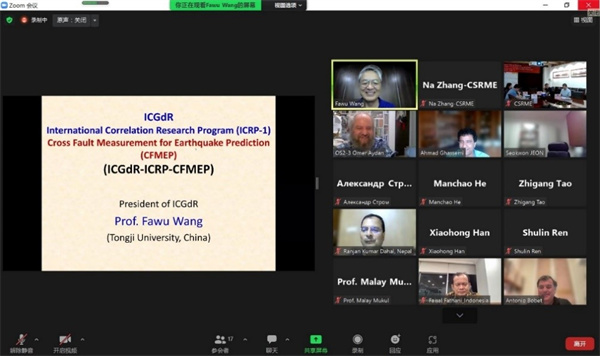 On the evening of July 25, 2022 (CST), the International Consortium on Geo-disaster Reduction (ICGdR) held the first online expert group meeting of the International Correlation Research Program on "Cross-fault Measurement for Earthquake Prediction". 21 experts from 8 countries around the world attended the meeting, including Prof. Manchao He, the Director of the expert group; Prof. Fawu Wang, the ICGdR President and Deputy Director of the expert group; Professor Zhigang Tao, the secretary-general of the expert group; Prof. Antonio Bobet and Prof. Ahmad Ghassemi from USA, Professor Teuku Faisal Fathani and Dr. Fikri Faris from Indonesia; Professor Ranjan Kumar Dahal from Nepal; Dr. Alexander Strom from Russia; Prof. Omer Aydan from Japan; Prof. Seokwon Jeon from South Korea; Prof. Malay Mukul from India, and Prof. Xiwei Xu from China.