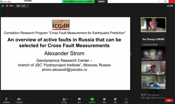 This meeting was presided over by Prof. Fawu Wang, the ICGdR President. He introduced the establishment background and main activities of the ICGdR at first, and then introduced the approval process of the International Correlation Research Program (ICGdR-ICRP-1) of "Cross-fault Measurement for Earthquake Prediction", as well as the responsibilities and obligations of the expert group, and finally introduced the composition and members of the expert group who were participating in this meeting.