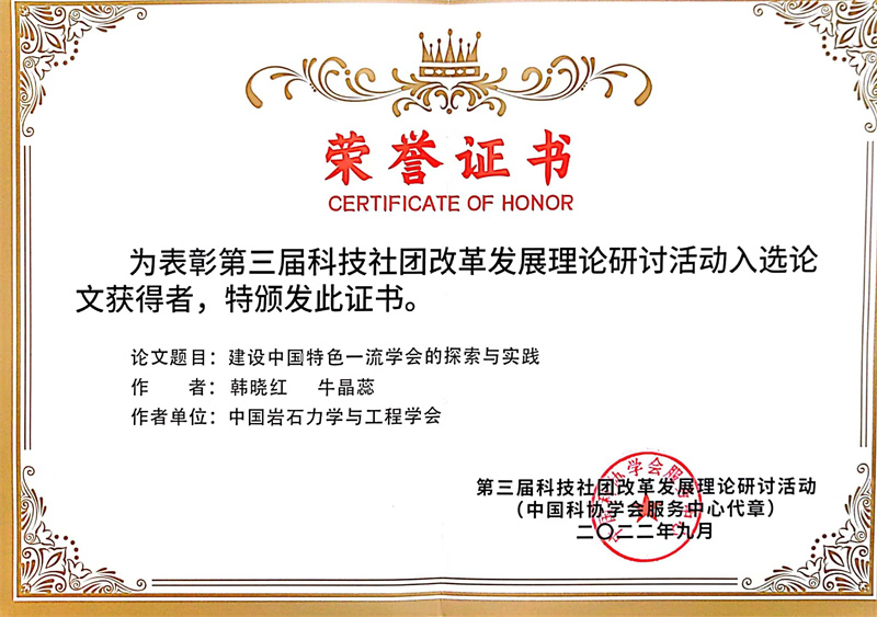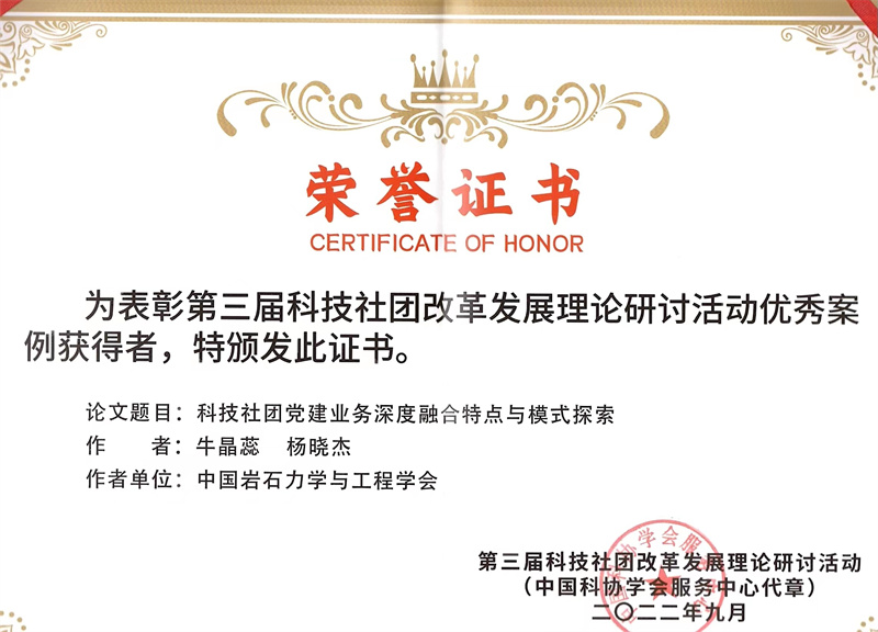 中国岩石力学与工程学会投稿的《科技社团党建业务深度融合特点与模式探索》和《建设中国特色一流学会的探索与实践》两篇文章被研讨会论文集收录,其中《科技社团党建业务深度融合特点与模式探索》被评为优秀案例并受邀做论坛报告。