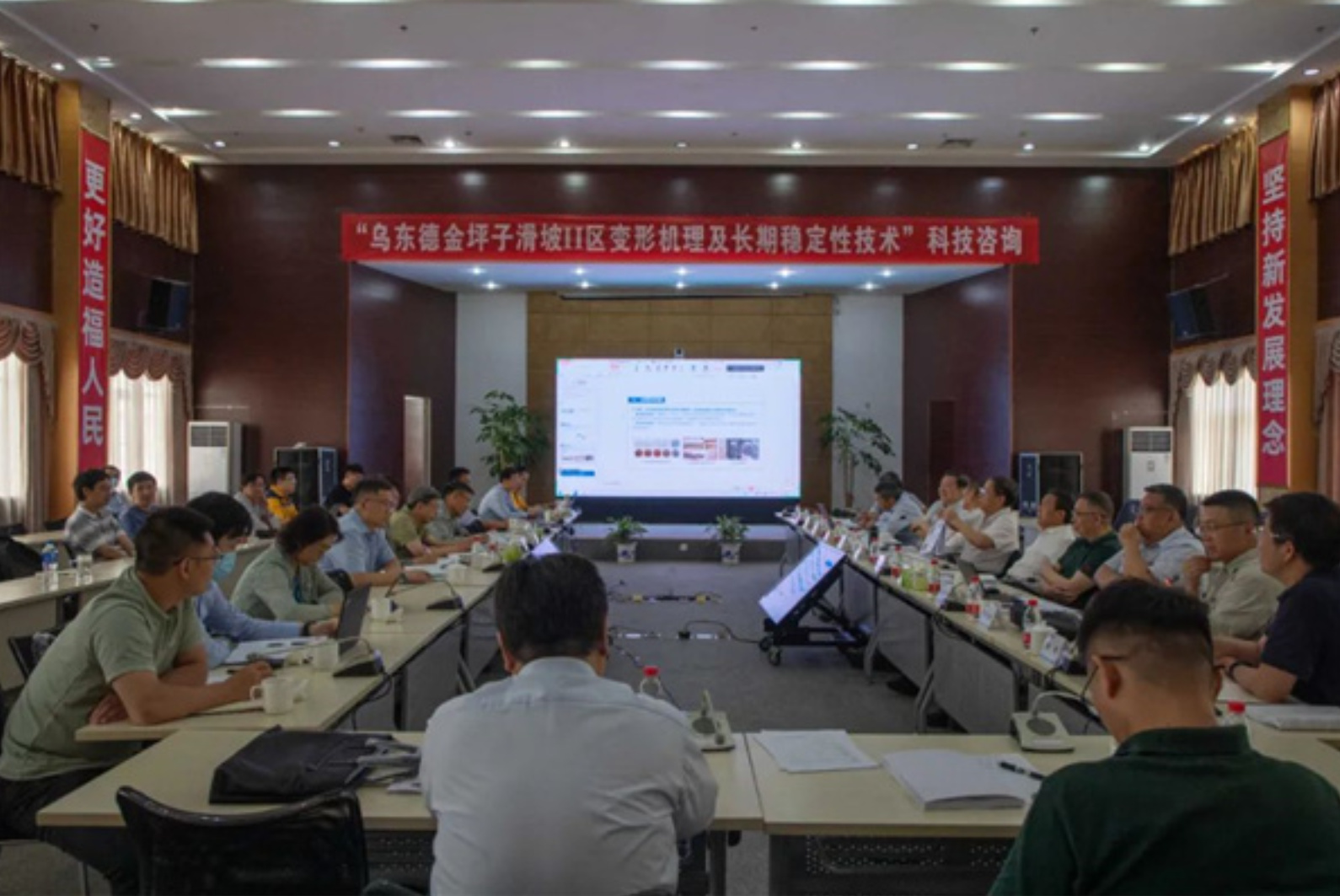 On May 11, 2023, the Scientific and Technological Achievement Evaluation Meeting titled "Key Technologies for Stability Control of Ultra-High and Steep Slopes in Layered Rock Mass under Complex Structural Conditions" organized by the CSRME was held in Wudongde Engineering Construction Management Center. Academician Manchao He, President of the CSRME, served as the director of the evaluation committee.
