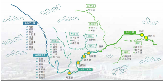 Figure 1. Schematic Diagram of Jinsha River and Yangtze Cascade Hydropower Stations (Source: China Fund News)