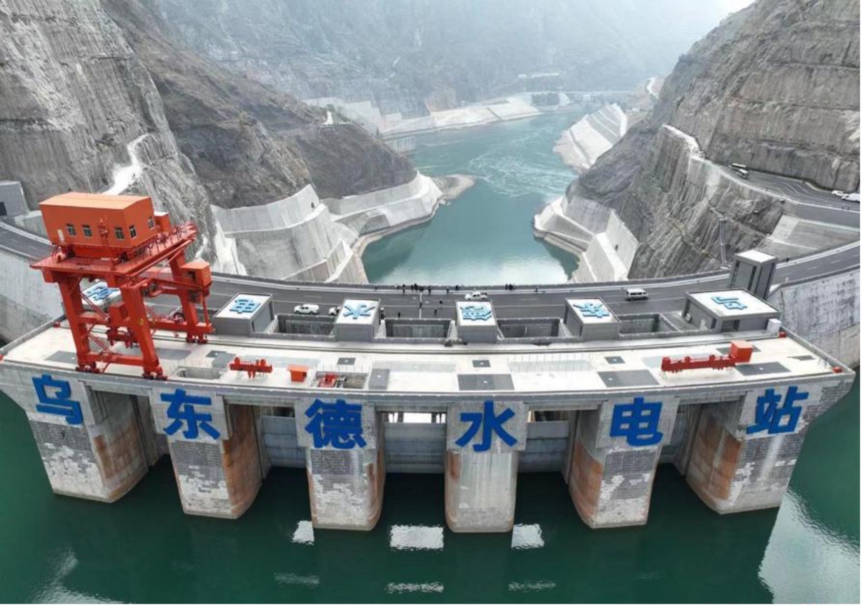 Wudongde Hydropower Station, the first in the four-station cascade on the lower Jinsha River, controls a drainage area of 406,100 km², accounting for 84% of the basin. Its average annual runoff is 116.4 billion cubic meters. The dam structure is a concrete double-curvature arch, with a crest elevation of 988 meters, a maximum dam height of 270 meters, and a base thickness of 51 meters. The thickness-to-height ratio is just 0.19, making it the thinnest 300-meter-class ultra-high arch dam in the world and the first in the world to apply low-heat cement concrete for the entire dam. The underground power station at Wudongde features 12 mixed-flow turbine generator units, each with a single capacity of 850,000 kW, totaling an installed capacity of 10.2 million kW. After full commissioning, the station's annual electricity output will reach 38.91 billion kWh, making it the largest single-unit capacity hydropower station in operation worldwide. Wudongde is not only a major national project under the "West-to-East Power Transmission" initiative, but also the fourth-largest hydropower station in China and the seventh largest in the world, crossing the 10 million kW milestone[2].